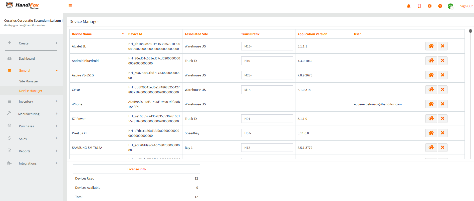 A new device is automatically added to your HandiFox company after the first synchronization is completed on the device.