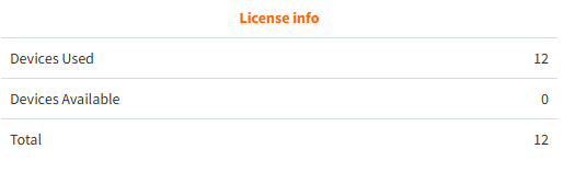 License info, you will see the total number of devices in your company, number of used licenses, and number of licenses avaiallbe for adding new device.